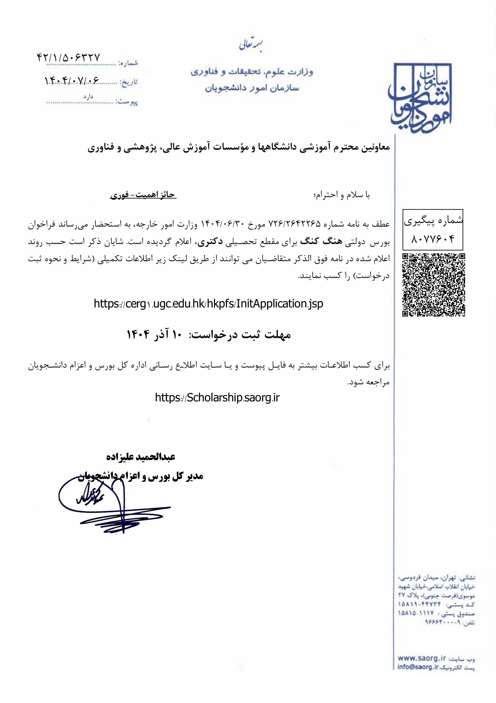 فراخوان بورس تحصیلی هنگ کنگ - دفتر همکاریهای بین الملل