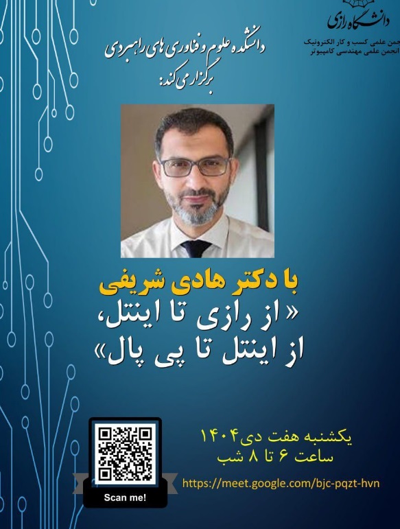 روز یکشنبه هفتم مهرماه دانشگاه رازی میزبان دانش آموخته موفق خود بود. دکتر هادی شریفی، فارغ‌التحصیل سابق گروه مهندسی کامپیوتر دانشگاه رازی، مدرک کارشناسی ارشد و دکترای مهندسی کامپیوتر را از دانشگاه ایالتی نیومکزیکو اخذ کرد. او بیش از ۱۰ سال در شرکت معروف اینتل به عنوان مهندس نرم‌افزار و معمار سیستم فعالیت داشت و اکنون در شرکت معتبر پی‌پال به عنوان معمار ارشد نرم‌افزار در حوزه هوش مصنوعی مولد (GenAI) مشغول است.