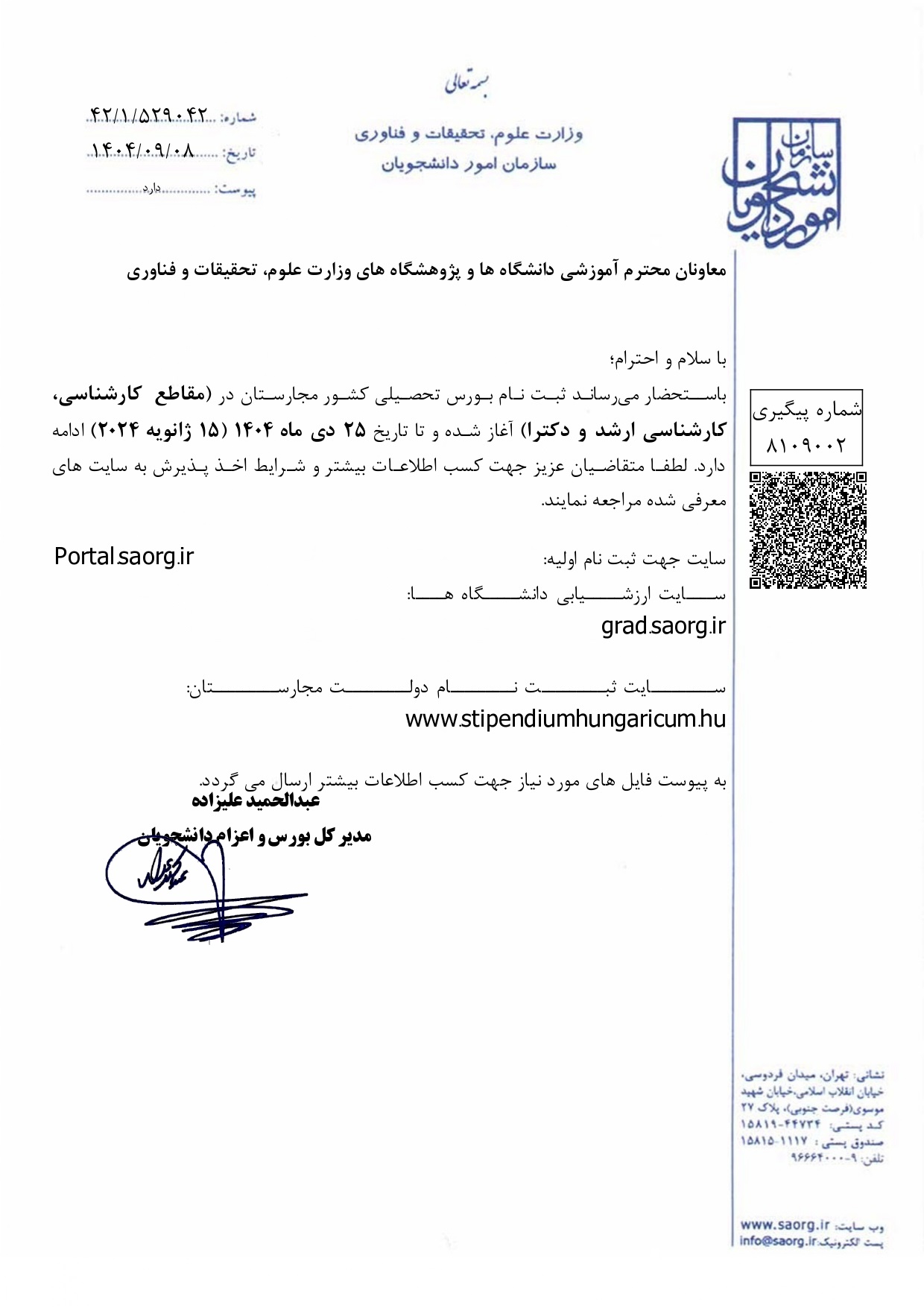 فراخوان بورس تحصیلی مجارستان - دفتر همکاریهای بین الملل